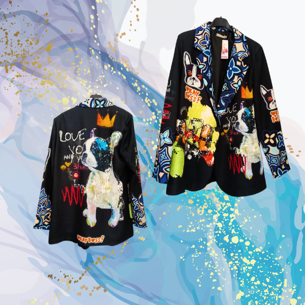 La Americana Rey Bulldog (talla única, hasta 42 aprox) es una declaración de intenciones: divertida, descarada y con ese toque pop-art que convierte cualquier look en puro espectáculo.