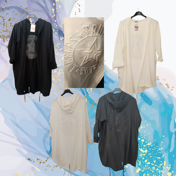 Una prenda cómoda, versátil y con mucho estilo ✨. Esta chaqueta tipo sudadera combina diseño y practicidad en una pieza que no puede faltar en tu armario. Su corte asimétrico (más corta por delante y más larga por detrás) estiliza la figura y le da un aire moderno y desenfadado.