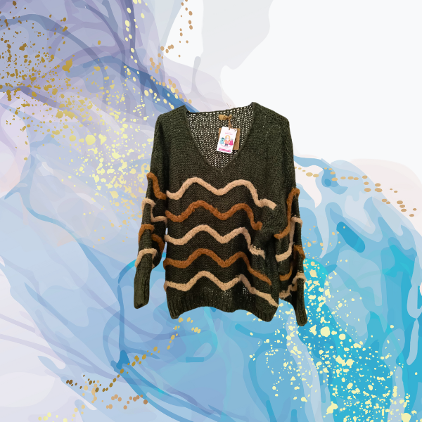 Su diseño ondulado en tonos tierra sobre fondo verde botella le da ese toque especial que combina genial con vaqueros, pantalones negros, leggins o incluso falditas.