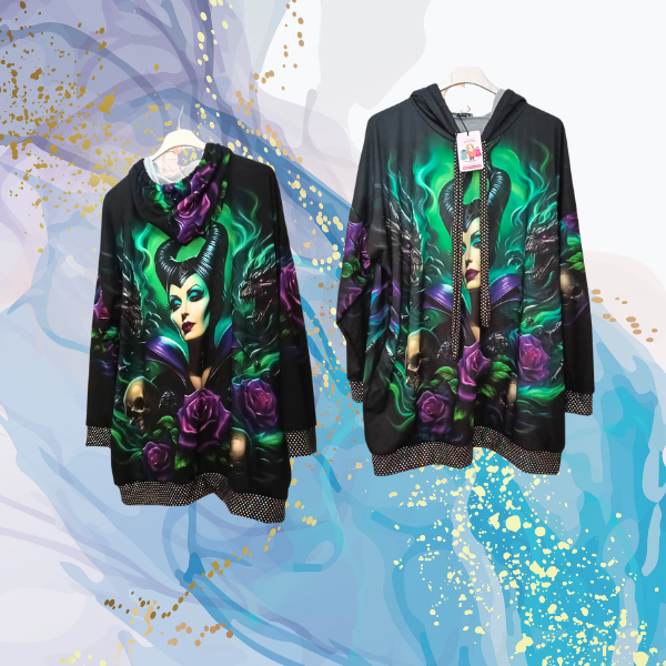 Maxi sudadera Maléfica, una sudadera oversize con capucha, bolsillos laterales, tallita curvy.