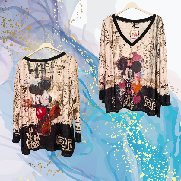 Dale un giro divertido y chic a tus días con nuestra sudadera de terciopelo Mickey Mouse. Su tacto suave y brillante convierte cualquier look en un planazo, mientras su estampado lleno de color y energía añade un punto desenfadado irresistible.