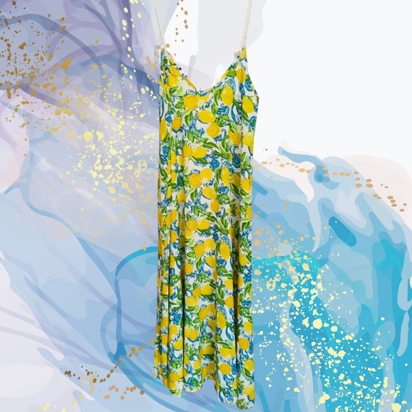Nuestro vestido Limoncello Azul es ese soplo de aire fresco que necesita tu armario (y tu verano). Con su estampado de limones vibrantes, su corte con vuelo y esos tirantes finos ajustables, es tan favorecedor como cómodo.