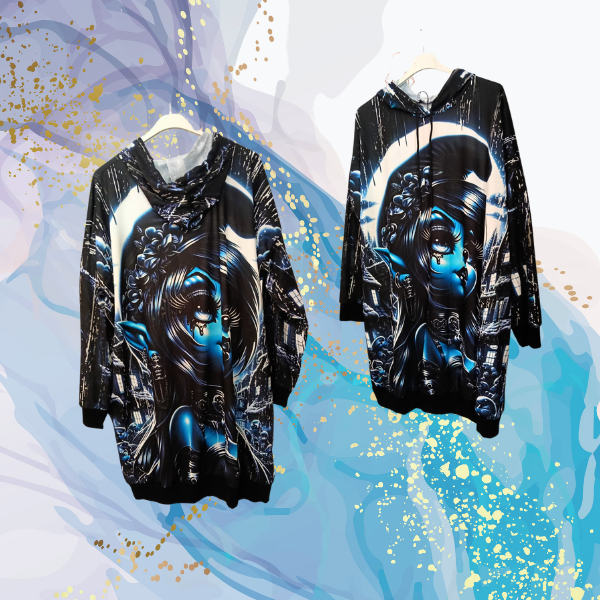 Vestido sudadera Pitufina Gótica, ¡uauuu! Para llevar como vestido o maxi sudadera, con capucha y bolsillos laterales.